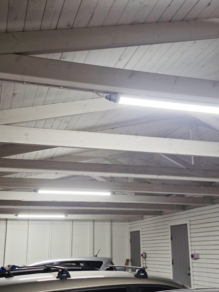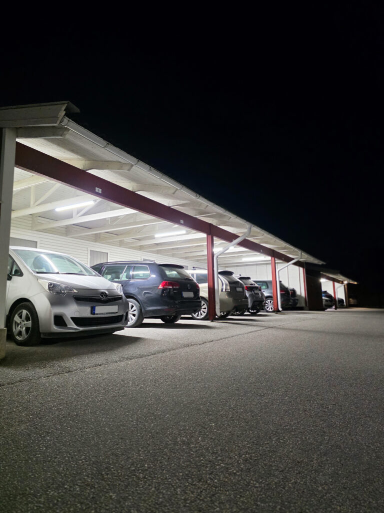 I en bostadsrättsförening i Mariefred har vi nyligen bytt ut samtliga armaturer i carportarna mot smart LED-belysning från Aura Light.